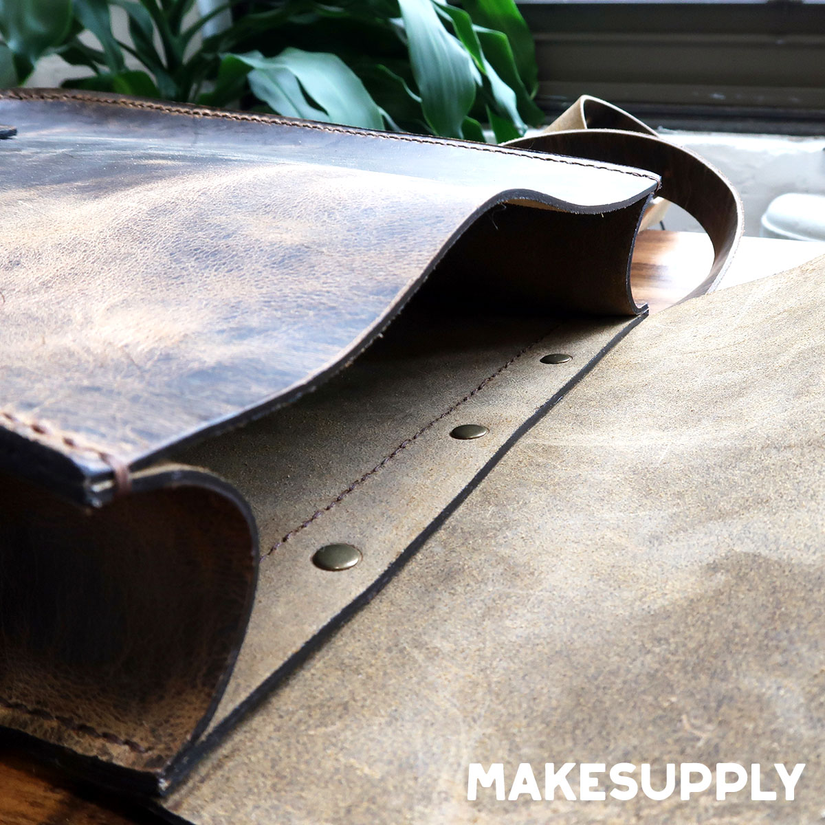In this video we used an 4.5oz/5.25oz oil tan leather called “Crazy Horse Leather” from Acadia Leather. This design is pretty flexible with the type and thickness of leather you can use. I would suggest up to 8oz for the body pieces.