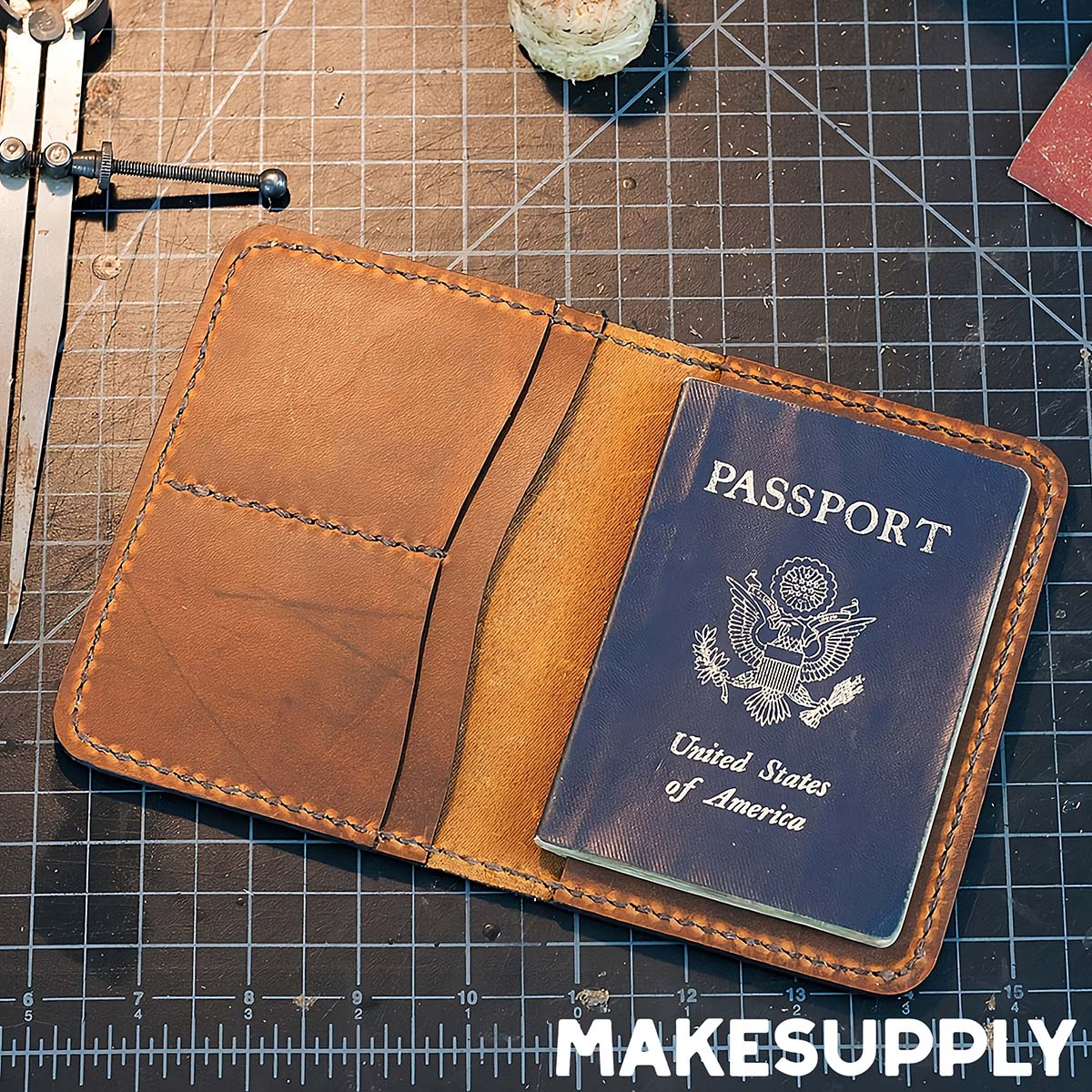 This leather passport cover pattern is a simple, classic design intended to hold a standard passport with a slim, minimal profile. The free PDF template includes a full build-along video demonstrating the construction process from start to finish.